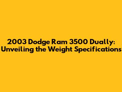 2003 Dodge Ram 3500 Dually Weight Breakdown: Key Specifications