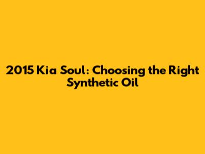 Choosing the right synthetic oil for your 2015 Kia Soul is a crucial part of maintaining its performance and longevity. By understanding the benefits of synthetic oil, selecting the appropriate type and viscosity, and following a regular oil change schedule, you can keep your engine running smoothly for years to come. Whether you decide to tackle the oil changes yourself or leave it to the professionals, the key is to stay informed and proactive about your car's maintenance needs. Happy driving!