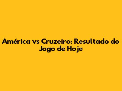 América Vs Cruzeiro: Resultado Do Jogo De Hoje
