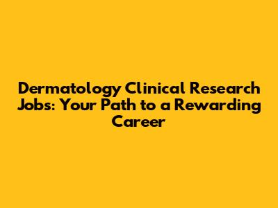 A career in clinical research dermatology jobs offers a unique opportunity to contribute to the advancement of dermatological care and improve the lives of patients with skin conditions. Whether you're interested in coordinating clinical trials, analyzing data, or developing new treatments, there's a role for you in this exciting field. With the right skills, qualifications, and a passion for innovation, you can embark on a rewarding career journey that makes a real difference in the world.