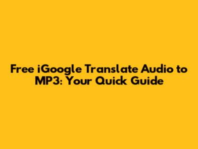 Free IGoogle Translate Audio To MP3: Your Quick Guide