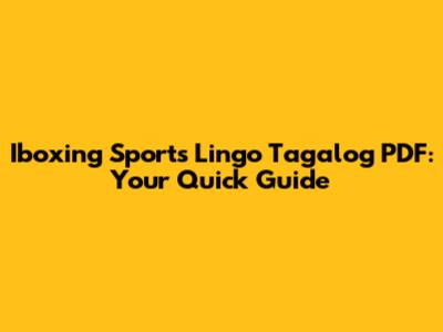 Iboxing Sports Lingo Tagalog PDF: Your Quick Guide
