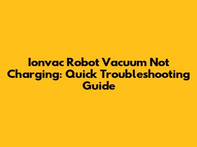 Ionvac Robot Vacuum Won't Charge? Troubleshooting Tips