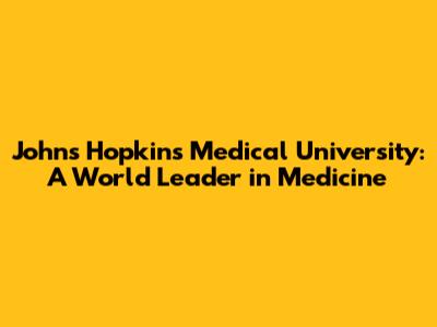 Johns Hopkins Medical University: A World Leader In Medicine