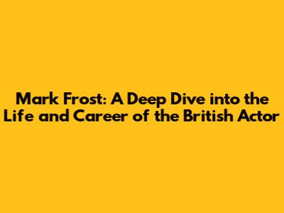 Hey guys! Ever heard the name Mark Frost? If you're a film buff or just love a good story, the name might ring a bell. But who exactly is this guy, and what's his deal? Well, buckle up, because we're about to dive deep into the fascinating world of Mark Frost, an incredible British actor whose work has graced both the big and small screens. We'll explore his early life, the roles that made him famous, and what makes him such a compelling figure in the entertainment industry. Let's get started!