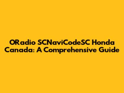 ORadio SCNaviCodeSC Honda Canada: A Comprehensive Guide