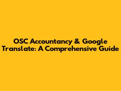 OSC Accountancy & Google Translate: A Comprehensive Guide