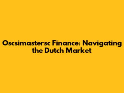 Oscsimastersc Finance: Navigating The Dutch Market