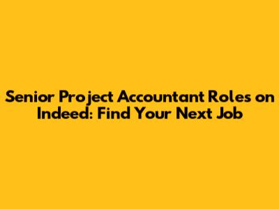 Senior Project Accountant Roles On Indeed: Find Your Next Job