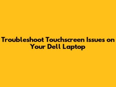 Troubleshoot Touchscreen Issues On Your Dell Laptop