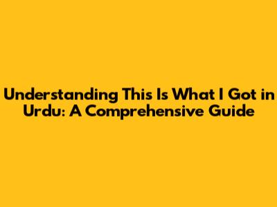 Understanding This Is What I Got In Urdu: A Comprehensive Guide