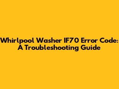 Whirlpool Washer IF70 Error Code: Troubleshooting & Solutions